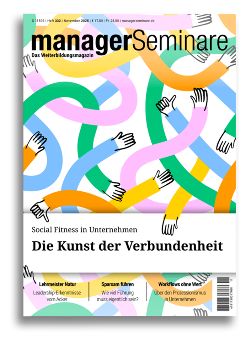 Unser Leitartikel im managerSeminare Magain 11/2025 zum Thema Social Fitness in Unternehmen inklusive Mini-Check-up und ersten möglichen Schritten sowie dem klaren Mehrwert für Unternehmen und Teams.