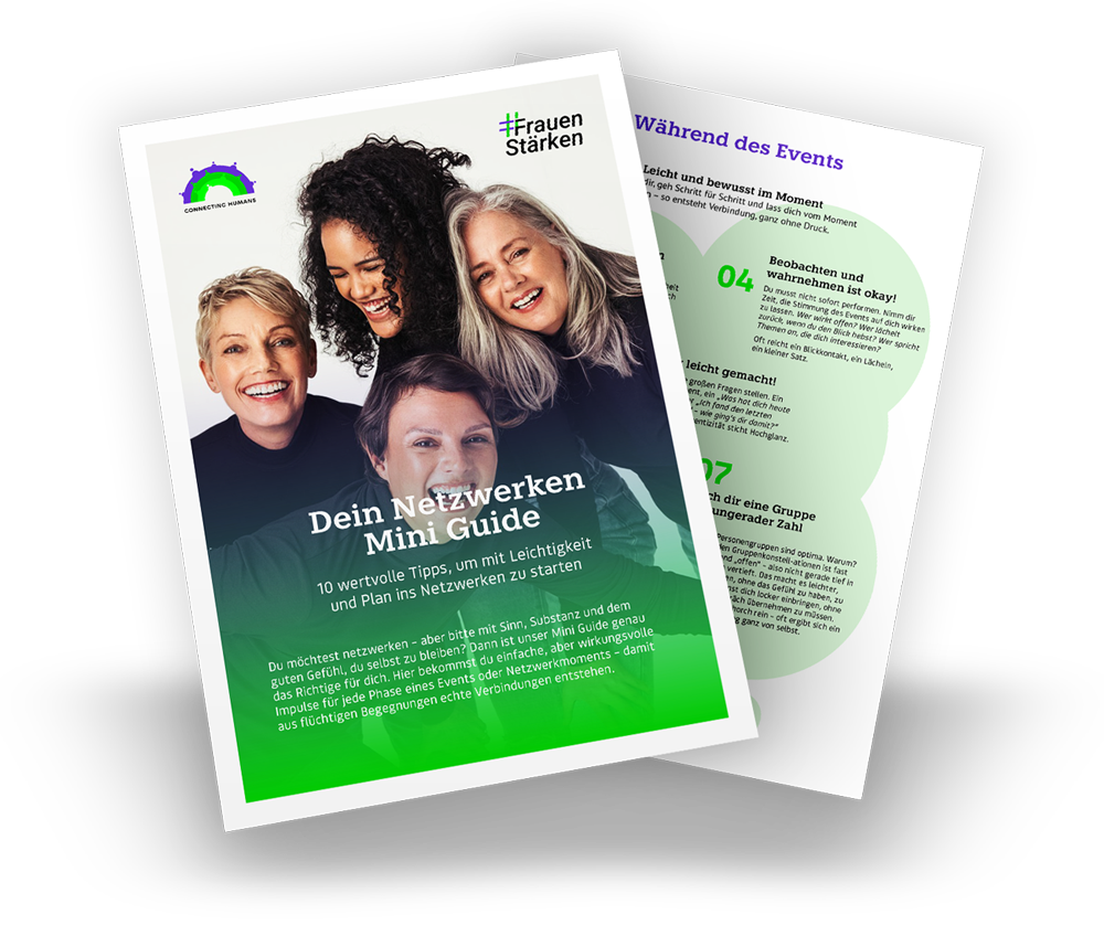 Du möchtest netzwerken – aber bitte mit Sinn, Substanz und dem guten Gefühl, du selbst zu bleiben? Dann ist unser Mini Guide genau das Richtige für dich. Hier bekommst du einfache, aber wirkungsvolle Impulse für jede Phase eines Events oder Netzwerkmoments – damit aus flüchtigen Begegnungen echte Verbindungen entstehen. Jetzt anmelden und PDF sichern: